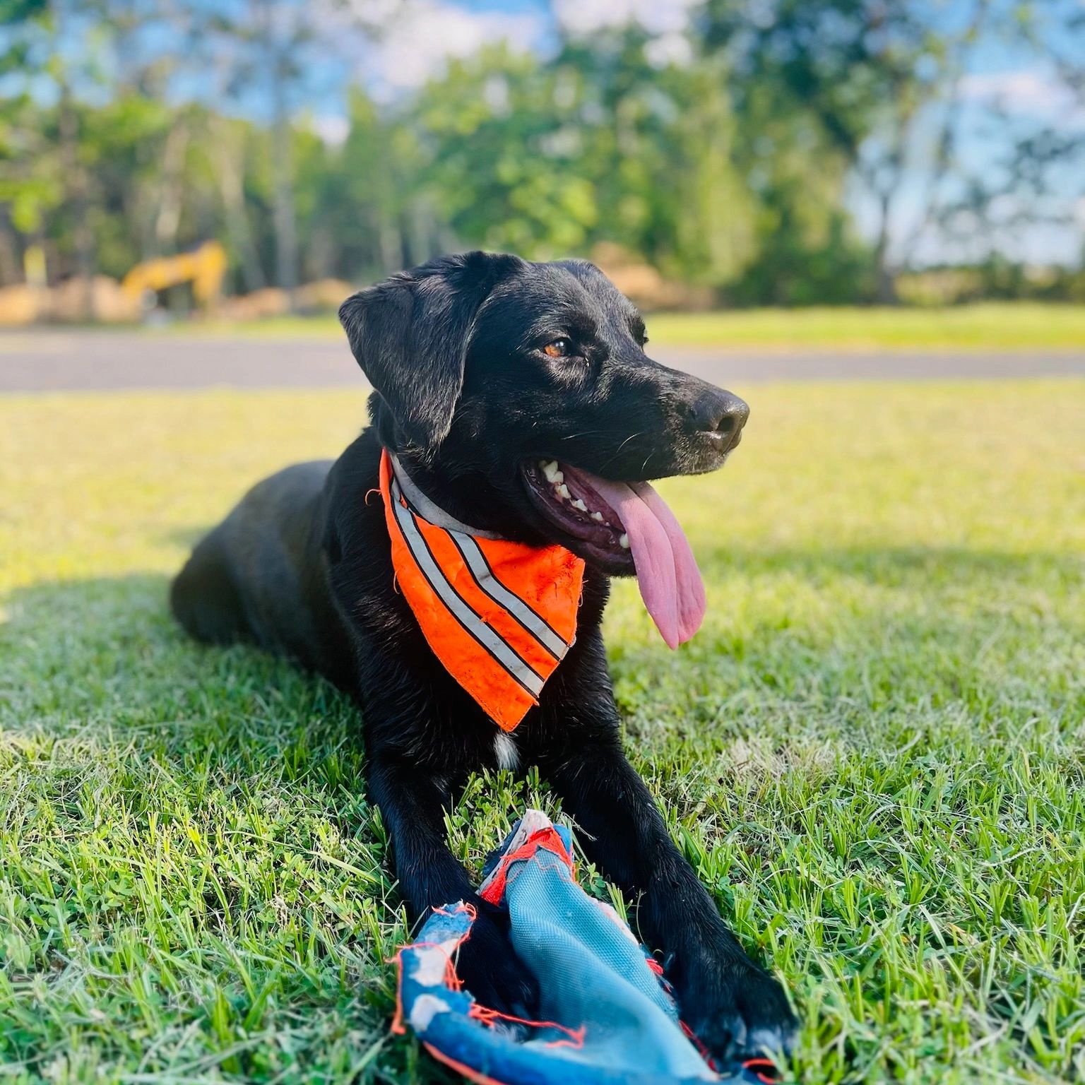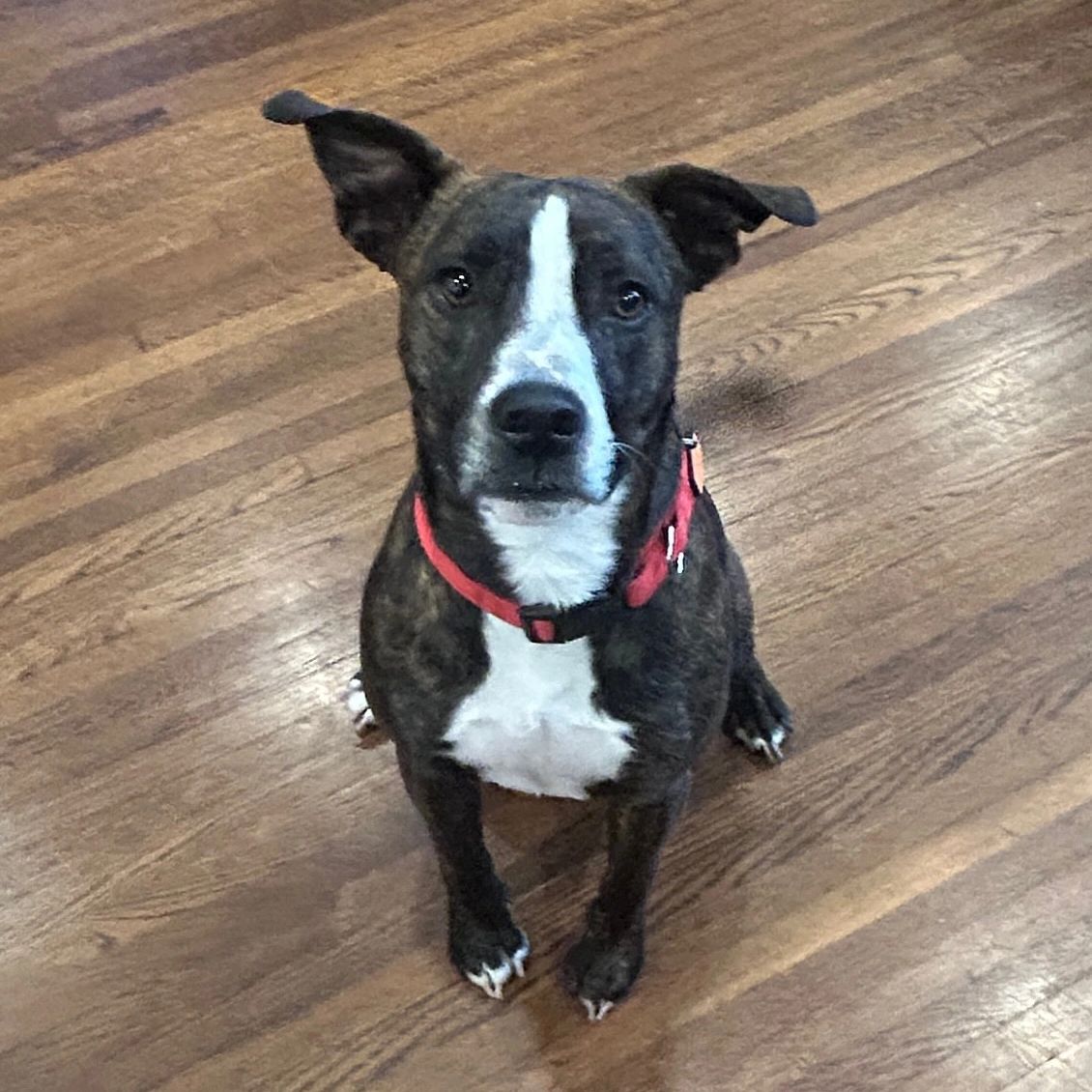 Breed: My foster dad laughs and says I am a one-of-a-kind brindled Lab that specializes in jumping and running through deep puddles when it rains and I am top notch at retrieving my yellow llama.