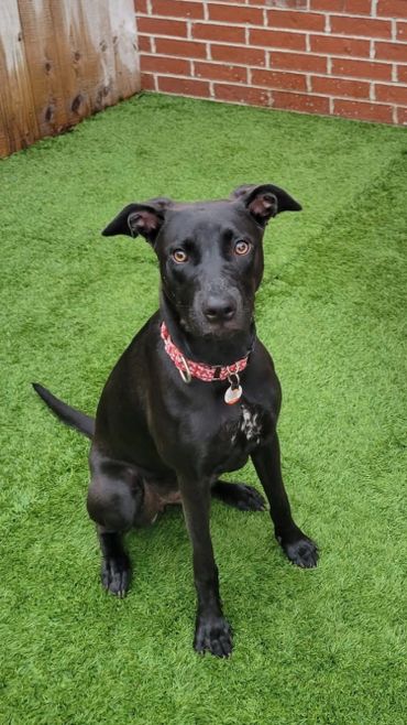 Hi there! I’m Onyx, and I believe every dog—big or small—is my friend! I absolutely love a good game of chase and I LOVE being the one who leads the chase. I also love squeaky toys!