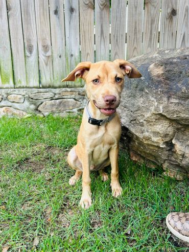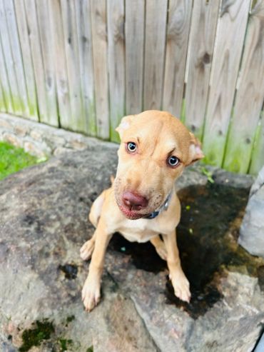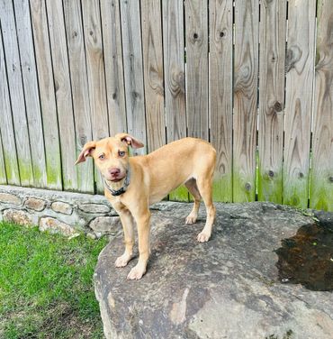 Cinta is a beautiful medium blonde color and her eyes are striking as they are multi-colored and beautiful! She is very tiny so likely will not get very big and she has very delicate features so would be great for young kiddos. She has a quiet spirit at times and is very submissive. She rarely participates in a ruckus with the other dogs and prefers to find a lap to sit in until the scuffle is over. She is proud of her new gained skill which is counter surfing and doesn't understand why her foster mom is not praising her for being so creative. She has found a way to satisfy her desire to see on the counter without breaking the rules. She now sits on the food bin with her nose at counter height where she can see exactly what her foster mom is whipping up for dinner. Cinta also loves to be the object of chase with her siblings! She and her siblings also love to keep their noses to the ground so we think they have a dash of hound in them.