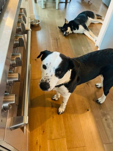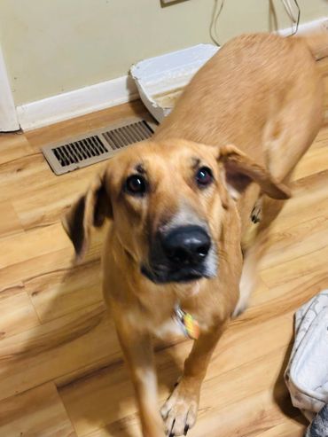 I have three canine foster siblings. My favorite playmate is Louie, a super cool German Shepherd-Husky mix. We have the best adventures together! Then, there is Poppy. I love hanging out with her. She is beagle mix so she is much smaller than Louie. We are total couch potatoes, often napping together and even helping each other clean our ears—teamwork makes the dream work. Lastly but not least, there is Henry who is a hound mix and obsessed with everyone’s ears so my ears are extra clean!
