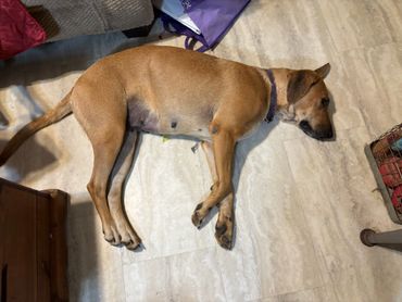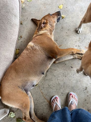 I showed up as a stray on someone’s property over Memorial Day, completely emaciated and in need of care. To everyone’s surprise, just a week later, I gave birth to three adorable puppies! They’ve all been weaned and are doing wonderfully, and now it’s my time to shine as I recover and learn about the good life.