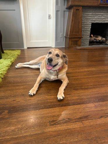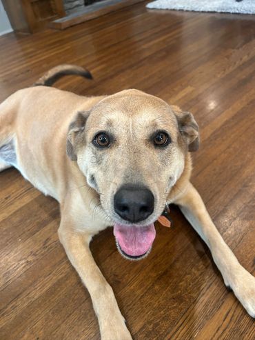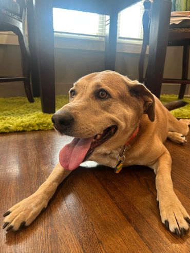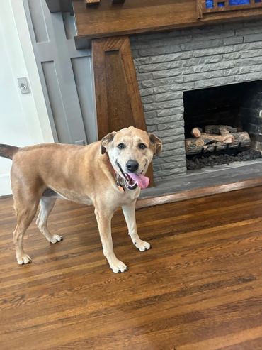Hi there! My name is Mable. 2026 has been a tough year so far because my owner passed away and when my owner's family came from out of state they ended up opening the door and just letting me out and abandoning me. I walked the neighborhood for weeks with neighbors feeding me but no one wanted to really help. Thankfully a wonderful lady picked me up when she heard I was left to fend for myself. So, I am new to the rescue so I haven't shown my whole personality yet but we are all getting to know one another. Right now I am fostered with lots of canine companions and I love them all! I have a bit of weight to lose, well ok, maybe a lot of weight to lose but I am a happy girl. I am working on figuring out how to walk on a leash. I don't pull but I guess I just haven't figured it all out yet so I tend to stand versus walking. You see, my previous owner would just open the door and let me romp about so I never had to walk on a leash. But, I am willing to learn.